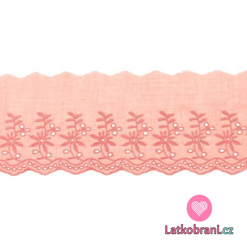 Bavlněná krajka s vyšívanými dvojitými květy 90 mm starorůžová
