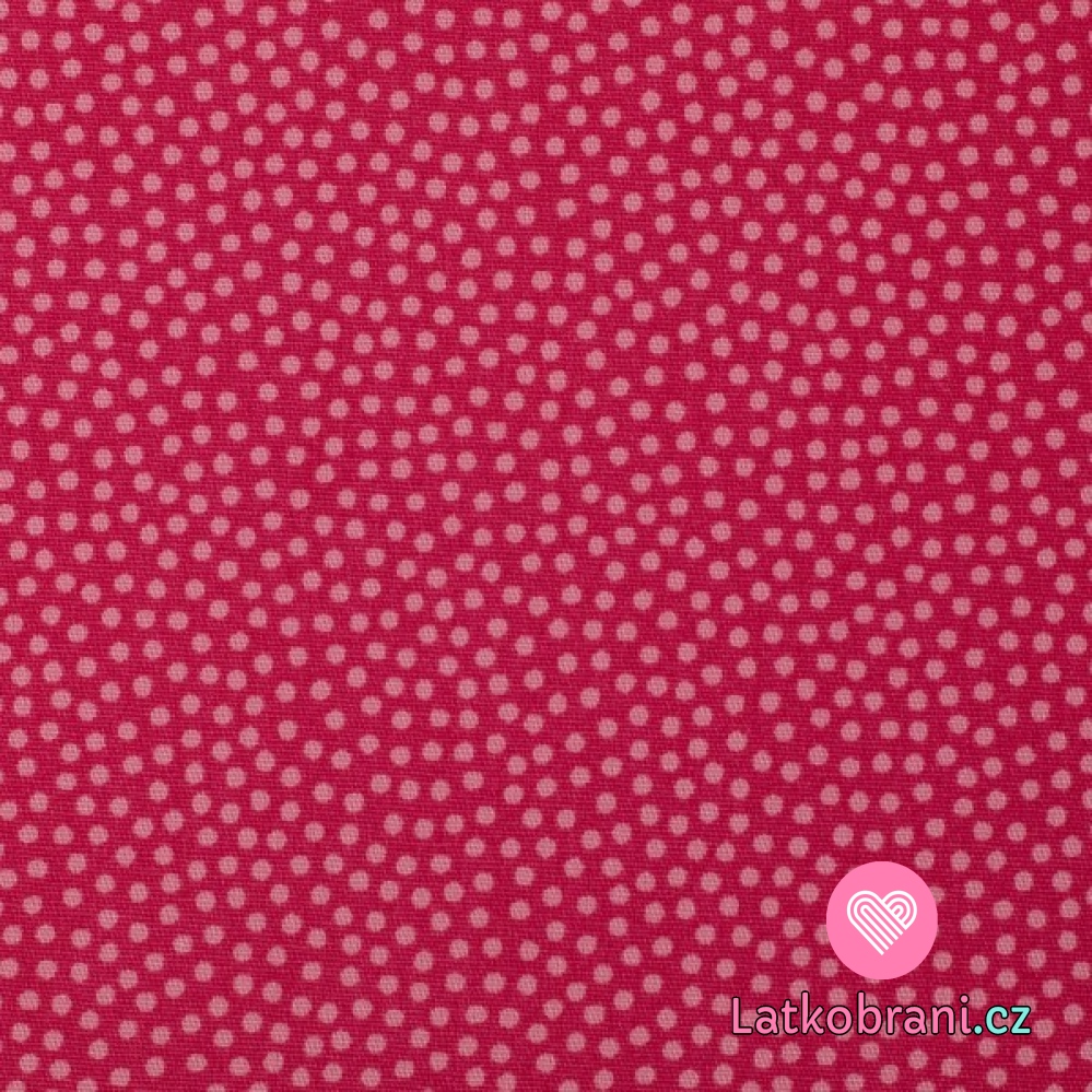 Bavlněné plátno drobné růžové puntíky na malinové