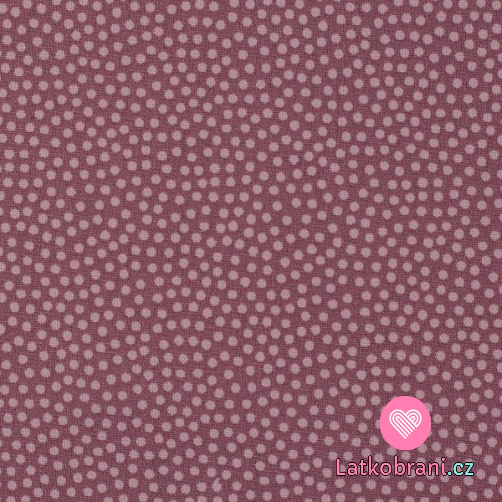 Bavlněné plátno drobné růžové puntíky na tmavší starorůžové