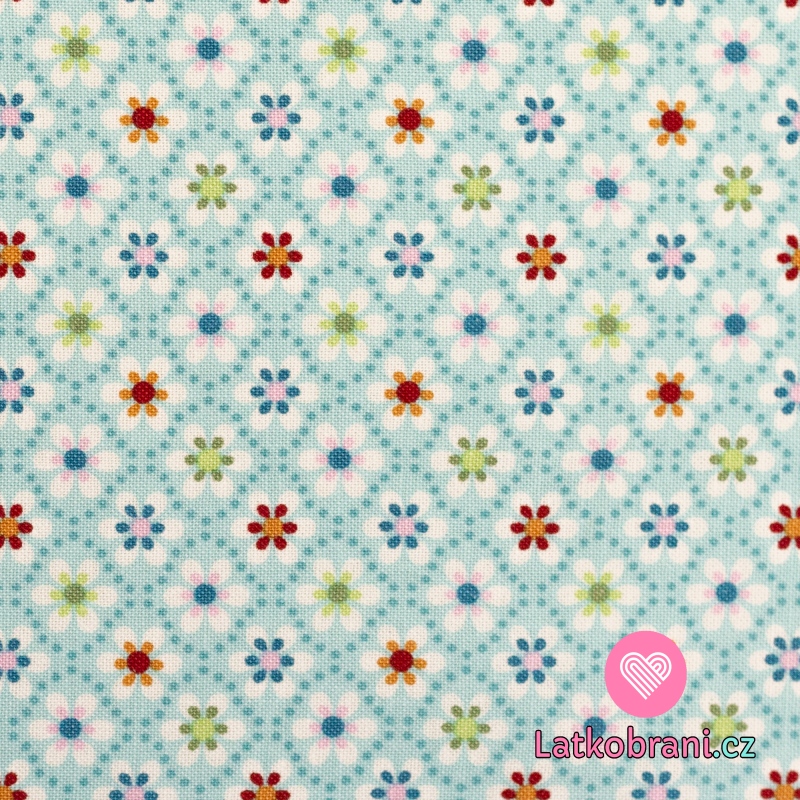 Bavlněné plátno potisk kvítka na modré tyrkysové