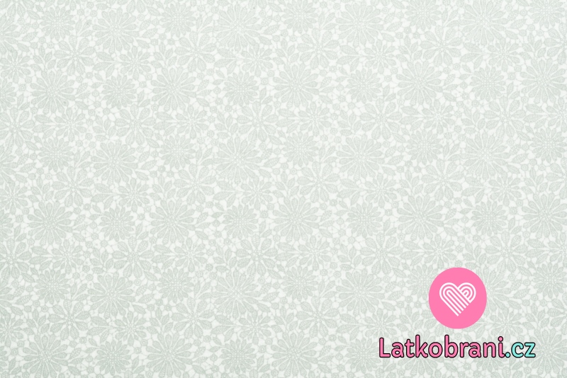 Bavlněné plátno šedé krajkové kytičky na bílé
