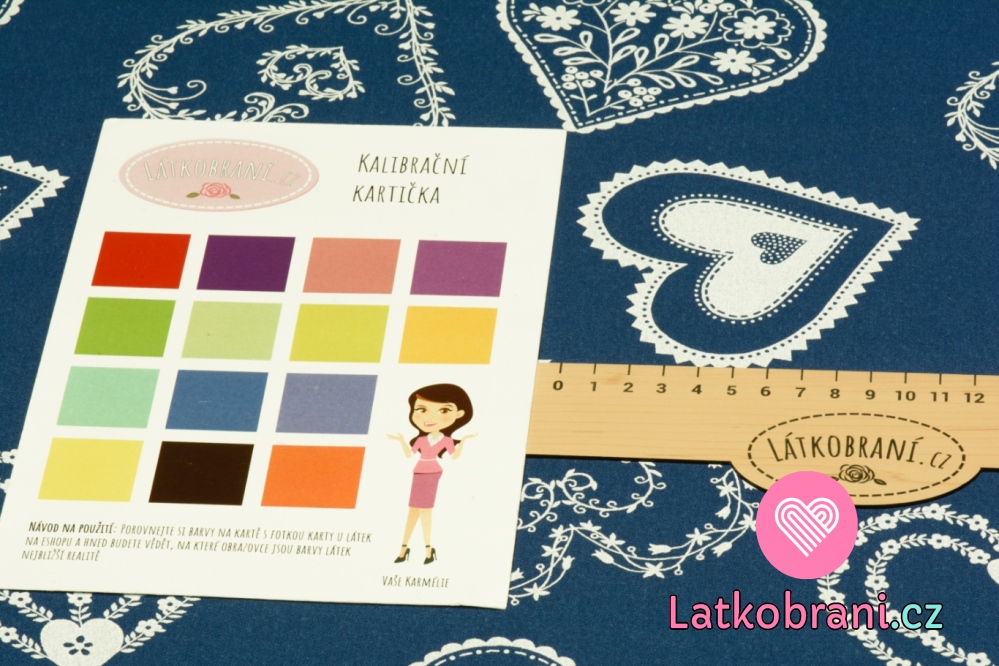 Bavlněné plátno velká bílá srdíčka na folklorně modré