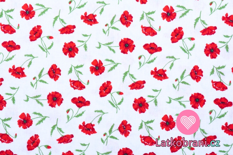 Bavlněné plátno vlčí máky na bílé