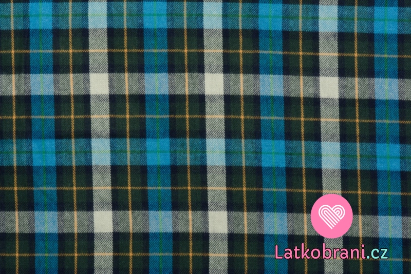 Bavlněný flanel modro-zelená kostka