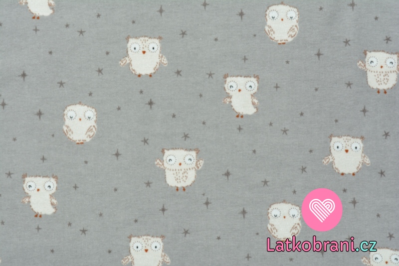 Třída 1 - Oděvy pro děti do 3 letBavlněný flanel se sovičkami okouzlí vaše malé parádnice. Je měkký, hřejivý a příjemný na dotek. Můžete z něj vytvořit domácí oděvy, pyžamka, ale i povlečení, polštářky, mantinely do postýlek a hnízdečka pro miminka.