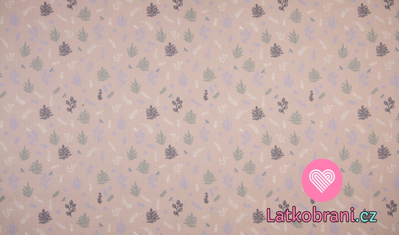 Bavlněný popelín potisk kytičky na zaprášené růžové