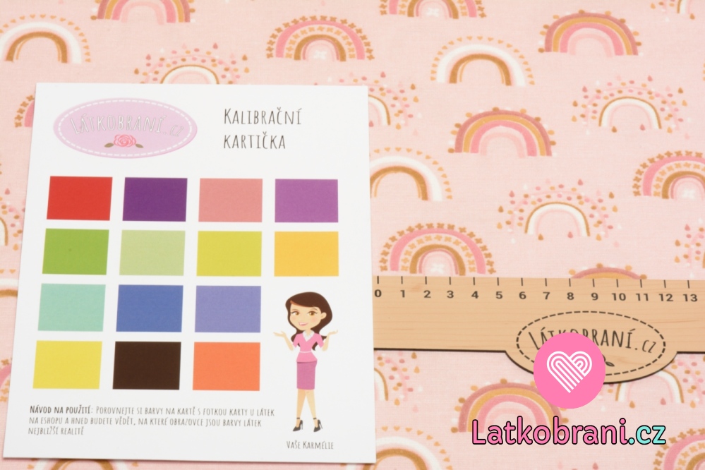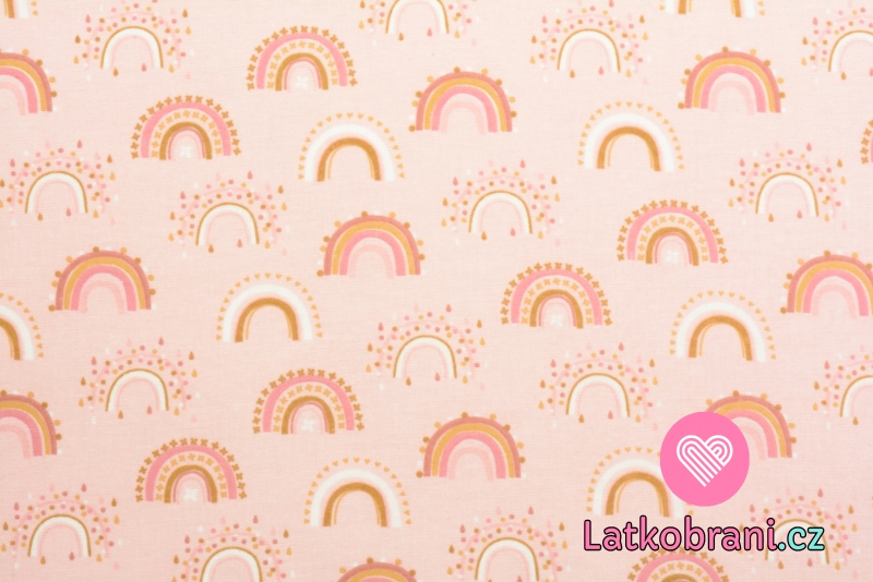Bavlněný flanel potisk barevné duhy na růžové