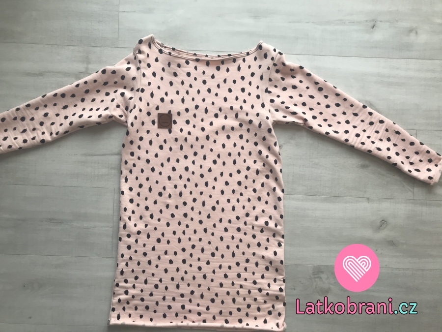 Teplákovina počesaná nepravidelné černé puntíky na růžové, BIO