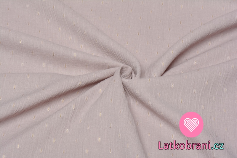 Mačkaná bavlna s výšivkou puntíků starorůžová