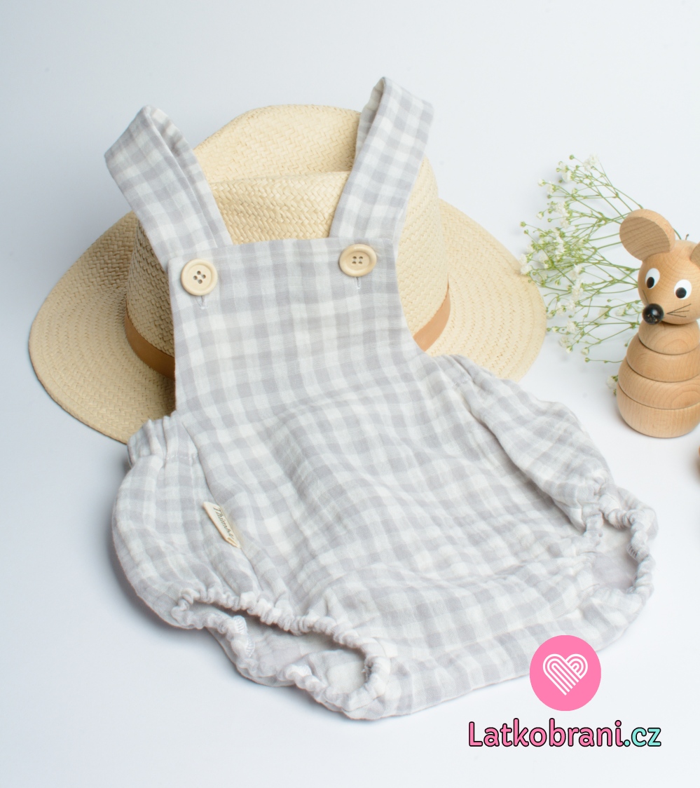 Dvojitá gázovina / mušelín šedá kostka, oboustranná