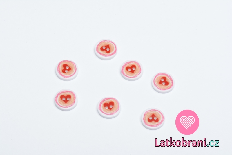 Knoflík bílý se srdíčkem v kolečku