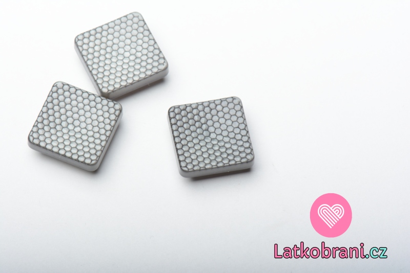 Knoflík čtvercový, lesklý, "včelí plástev" šedý