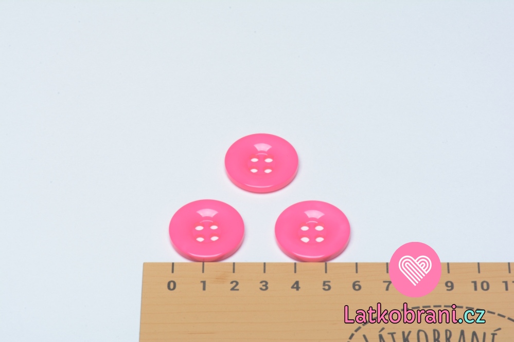 Knoflík hladký, lesklý, sytě růžový 25mm