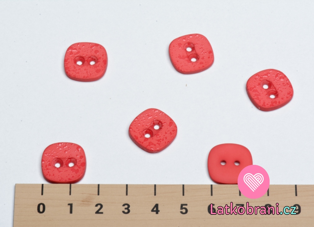 Knoflík hranatý, zaoblený, s efektem kapiček růžový tmavší