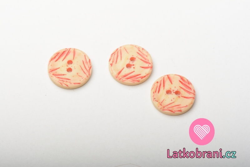 Knoflík kulatý, červený s lístečky - malý