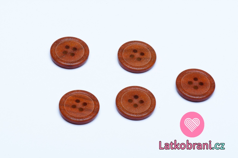 Knoflík kulatý, čtyřdírkový, cihlový s jemnými krupičkami