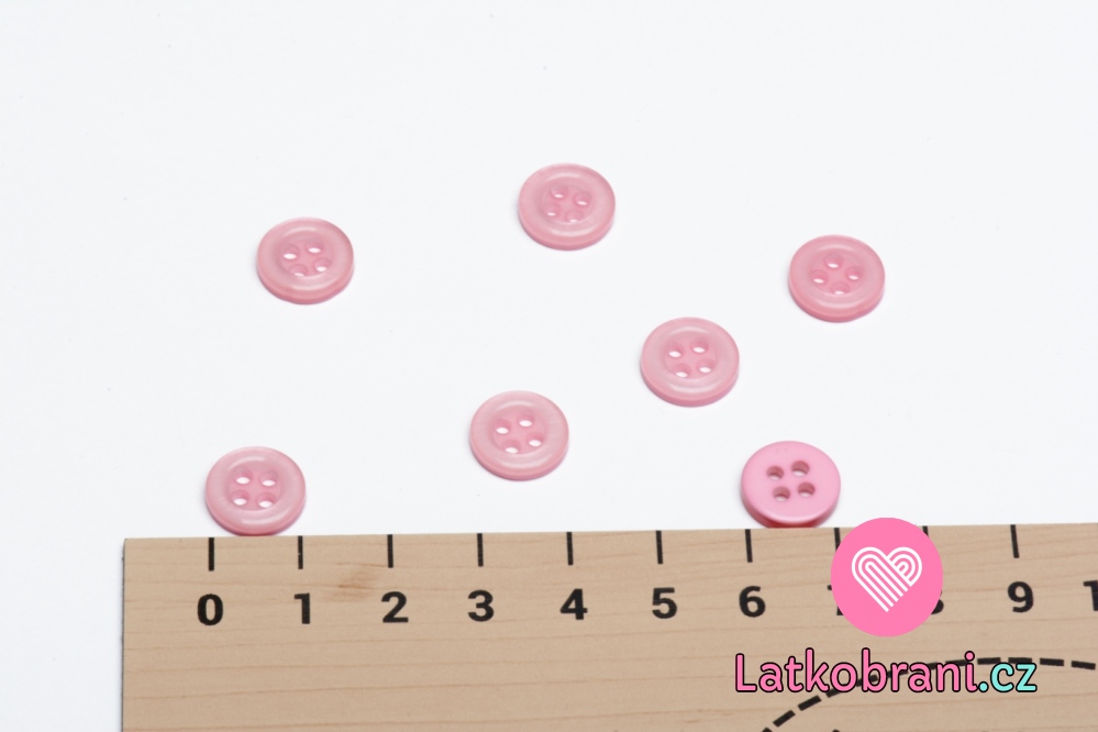 Knoflík kulatý čtyřdírkový, perleťový, růžový