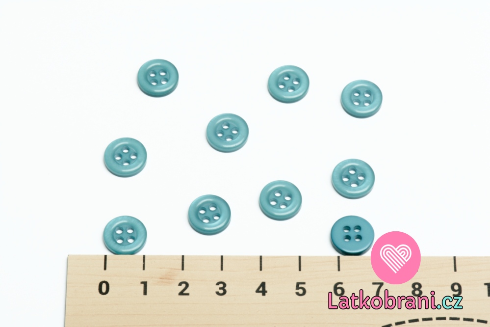 Knoflík kulatý, čtyřdírkový petrolejový