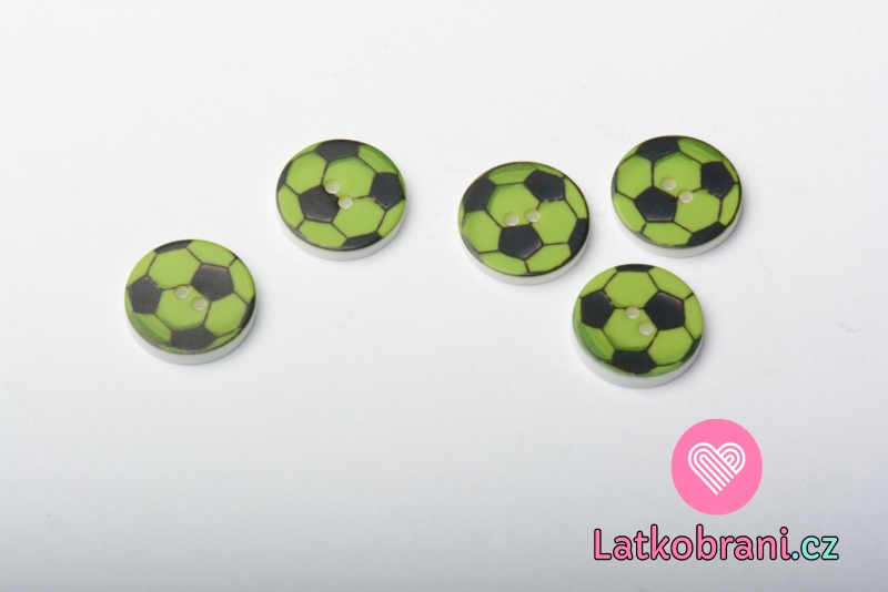Knoflík kulatý, dětský, zelený s fotbalovým míčem