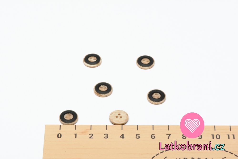Knoflík kulatý, dřevěný s ozdobným hnědým kruhem 13 mm