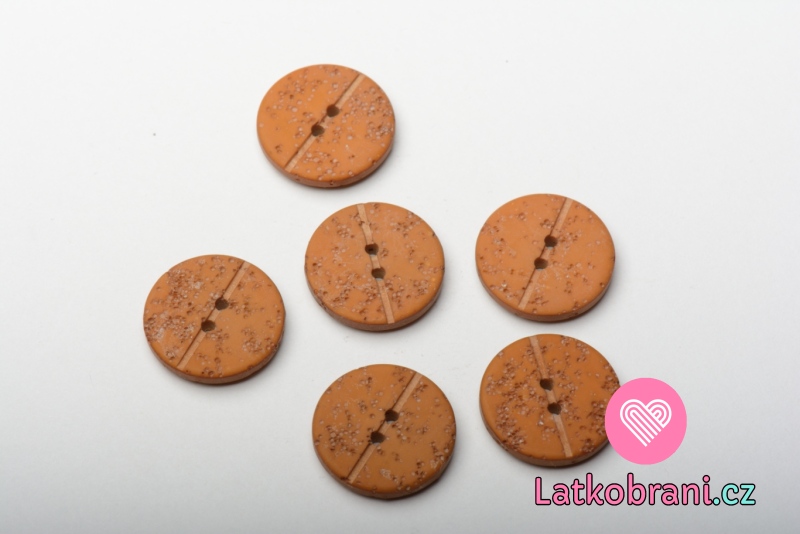 Knoflík kulatý, hnědý s "rýhou" uprostřed