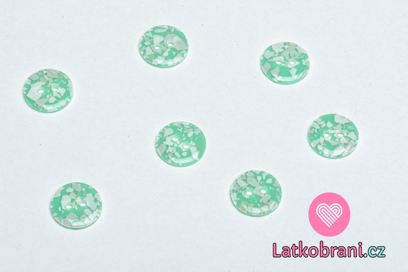 Knoflík kulatý, lesklý zelený s bílými plátky