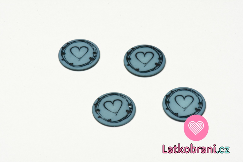 Štítek kulatý, matný, malované srdíčko na modré