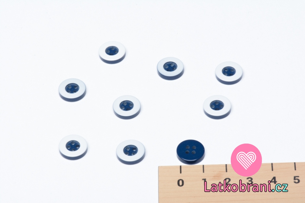 Knoflík kulatý, modrý s bílým okrajem