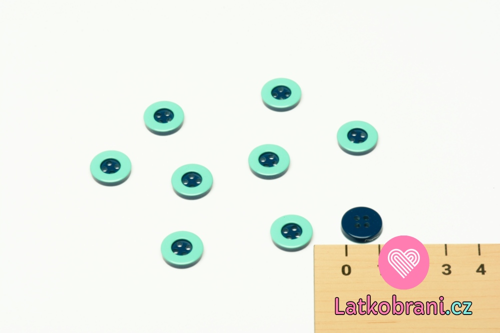 Knoflík kulatý, modrý se zeleným okrajem