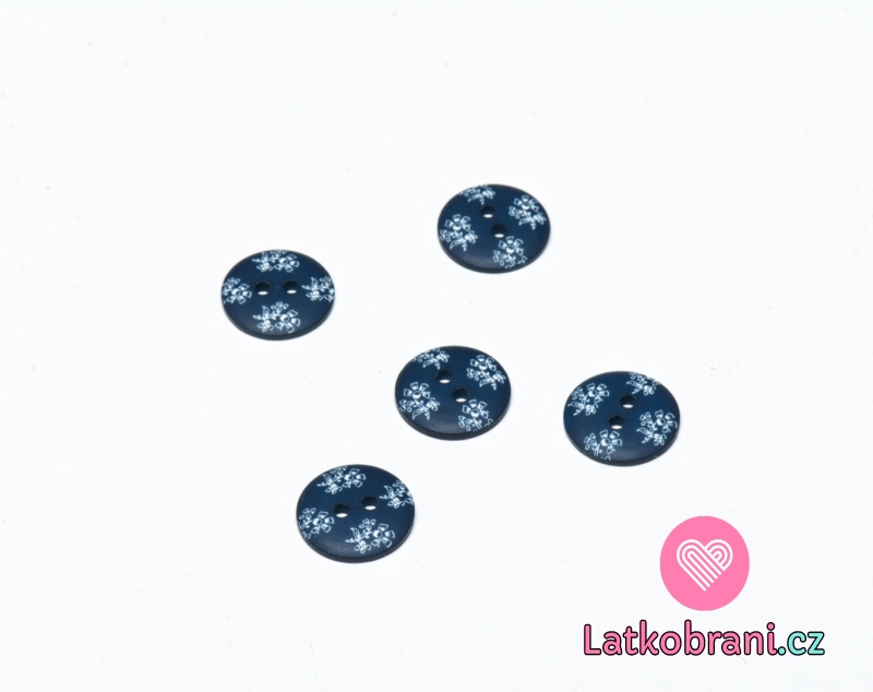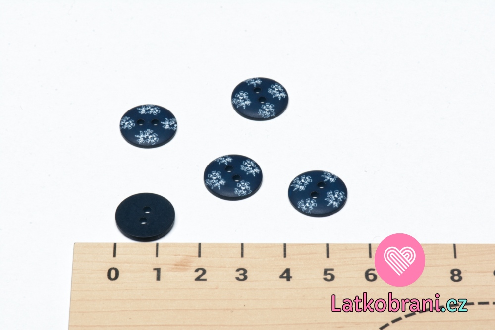 Knoflík kulatý potisk karafiáty na modré tmavší