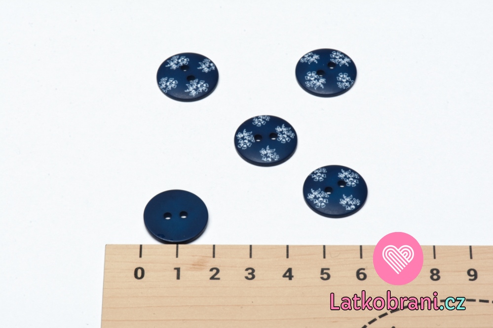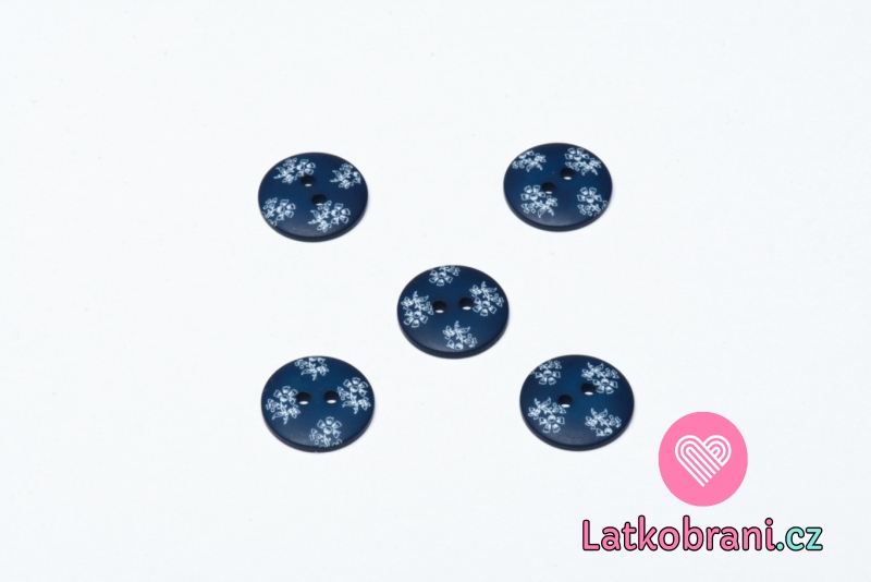 Knoflík kulatý potisk karafiáty na modré tmavší 18 mm