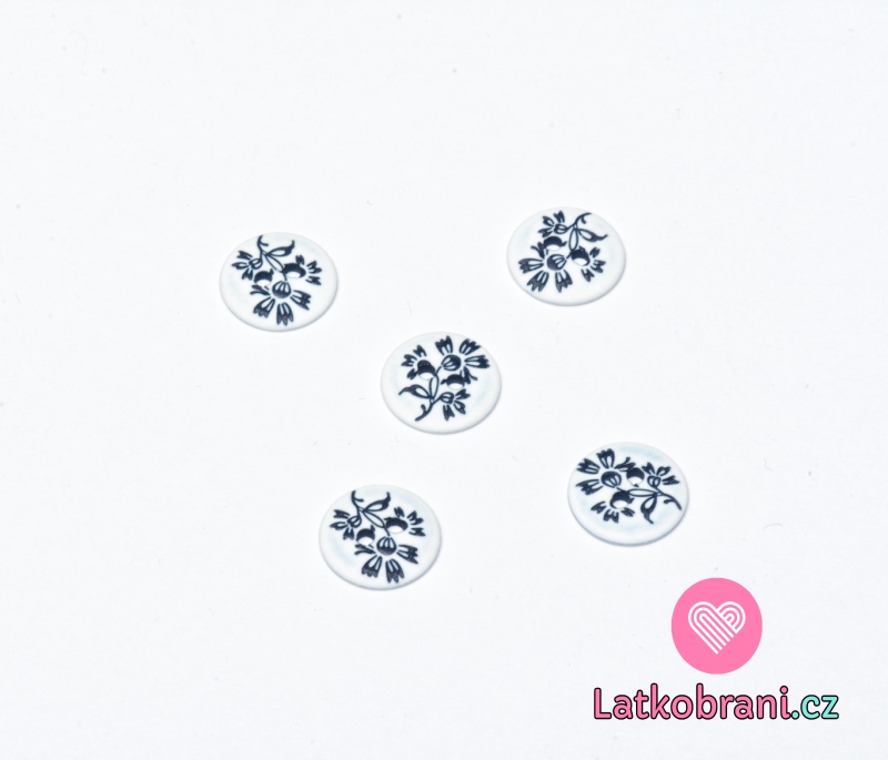 Knoflík kulatý potisk kytička na bílo-modré