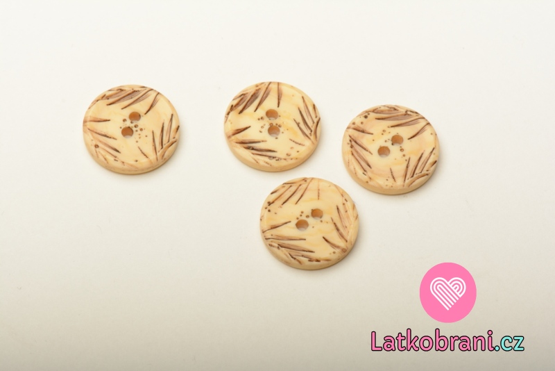 Knoflík kulatý, tmavě hnědý s lístečky - střední