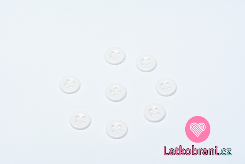 Knoflík, lesklý, kulatý, čtyřdírkový, bílý 11 mm