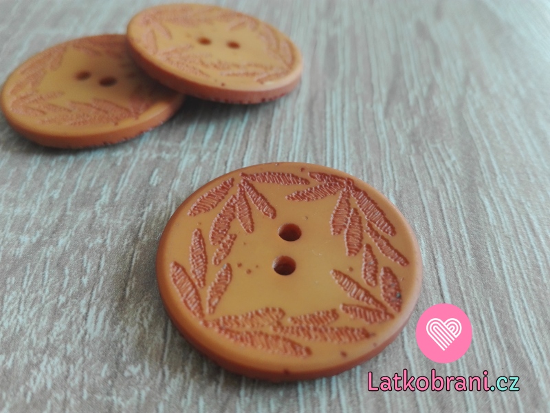 Knoflík s vyrytými lístečky oranžový
