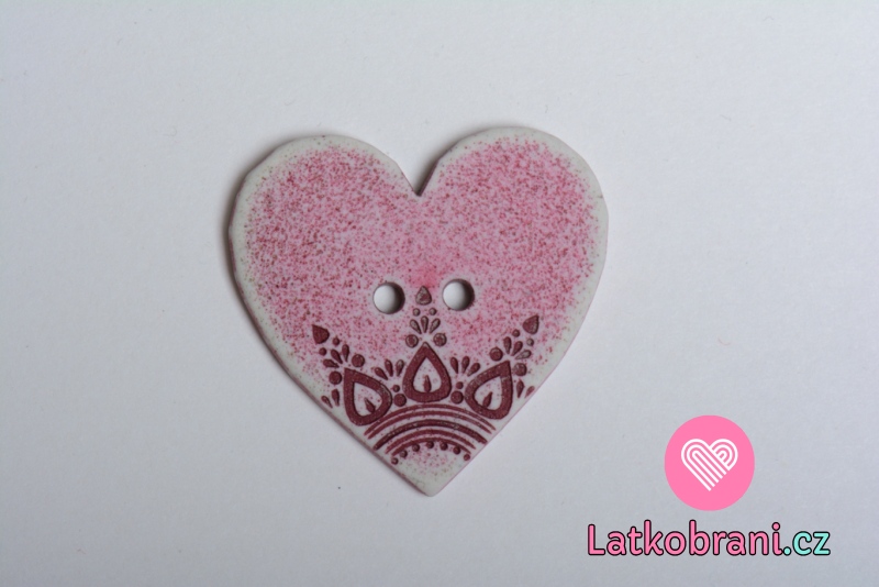 Knoflík srdíčko malinové s ornamenty