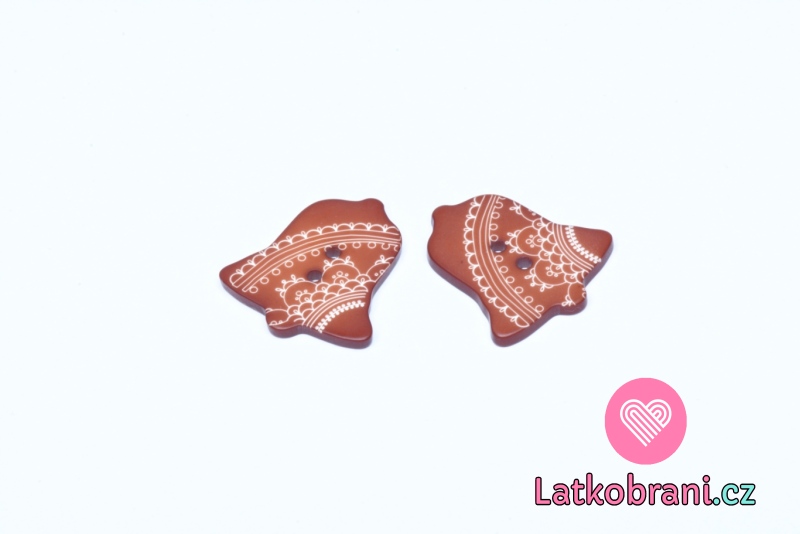 Knoflík světle hnědý zvoneček s bílým zdobením