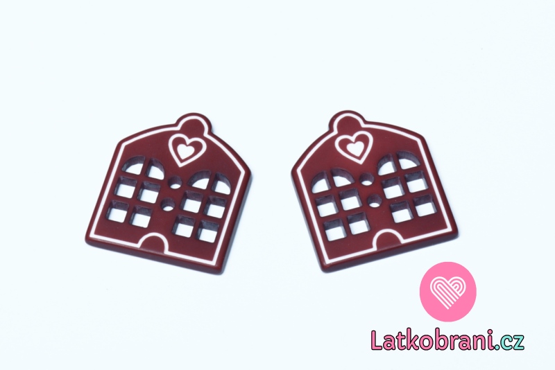 Knoflík ve tvaru domečku se srdíčkem vínový