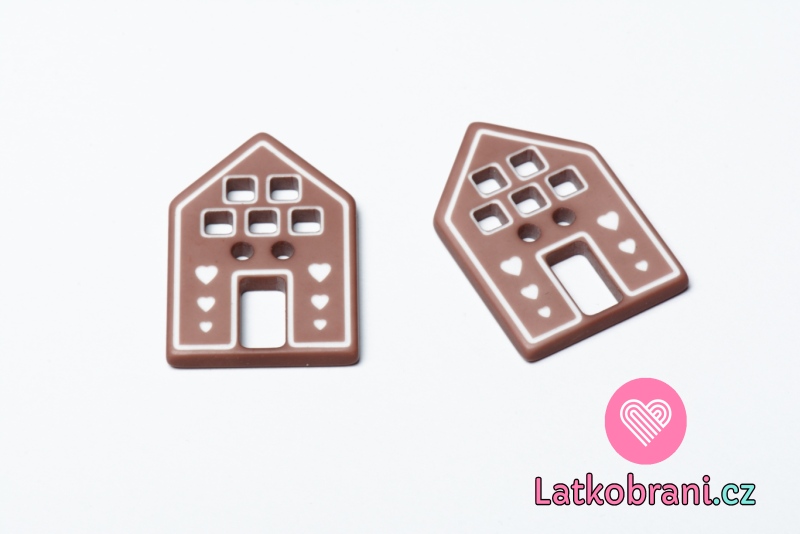 Knoflík ve tvaru domečku se srdíčky pudrový tmavší
