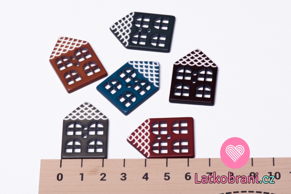Knoflík ve tvaru domečku vínový
