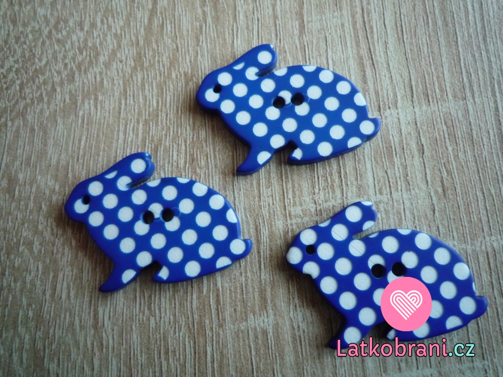 Knoflík zajíček tmavě modrý s bílými puntíky