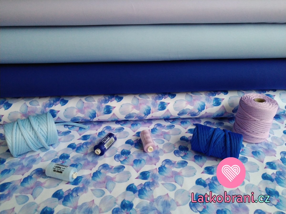Teplákovina potisk modro - fialkové okvětní lístky
