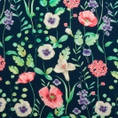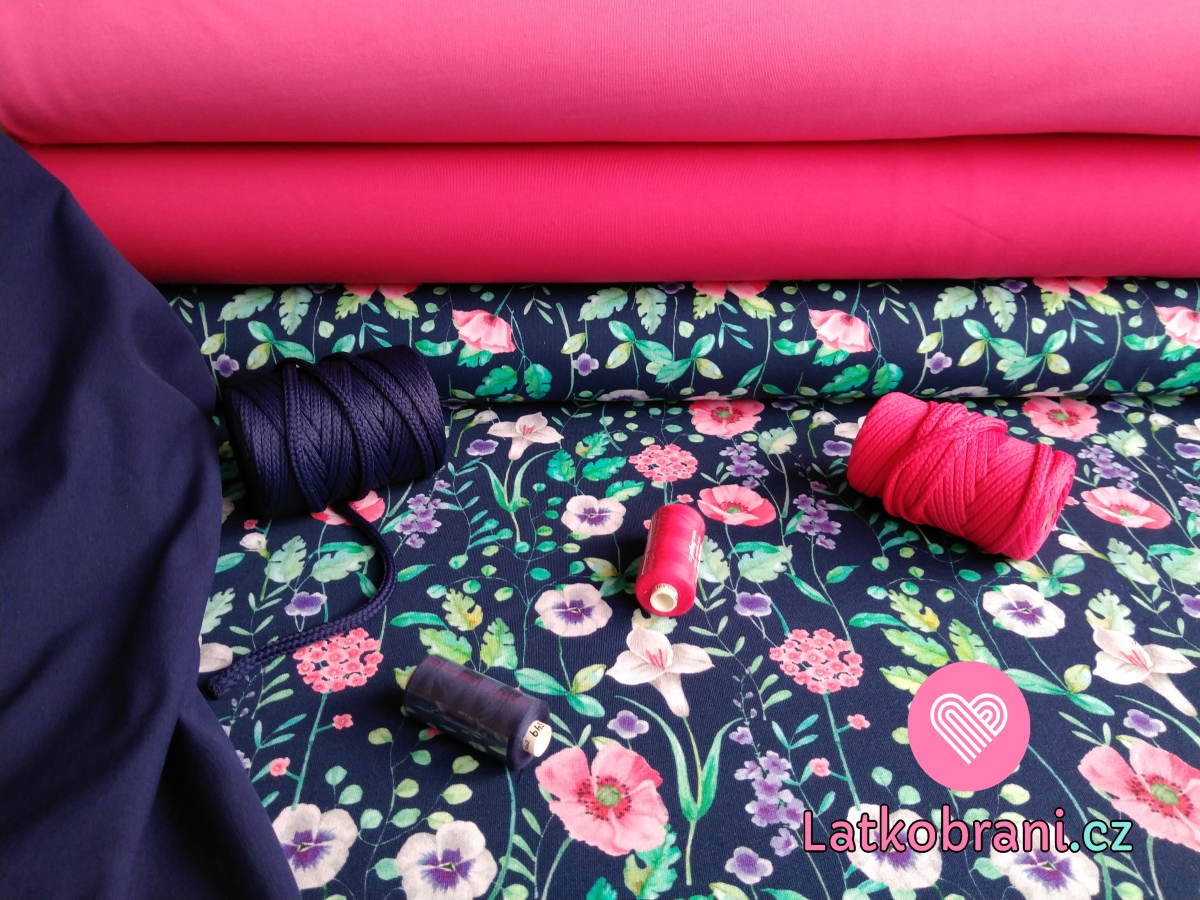 Teplákovina potisk malované květy na tmavě modré, BIO
