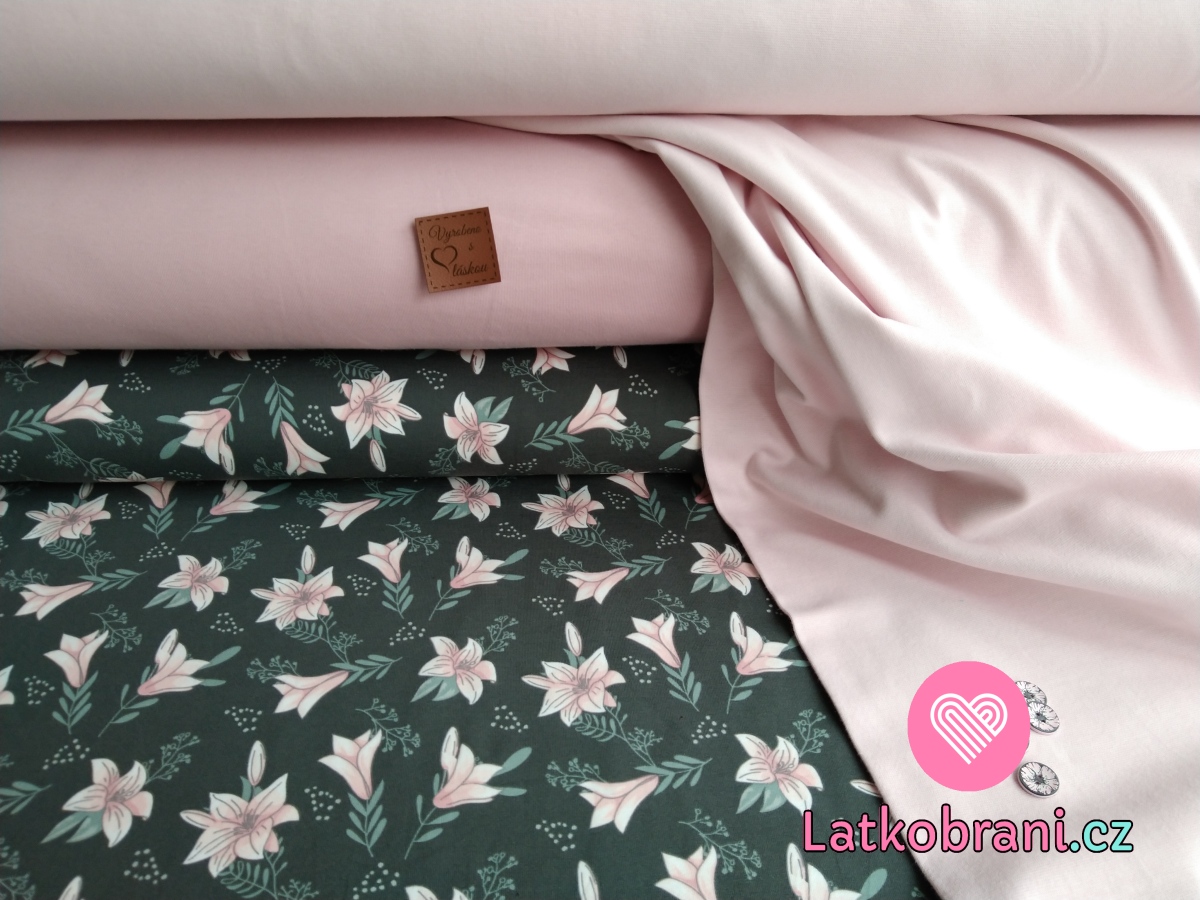 Úplet potisk růžové lilie na hnědo-šedé