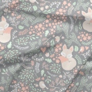 Teplákovina spící lištička s kvítky na světle šedé