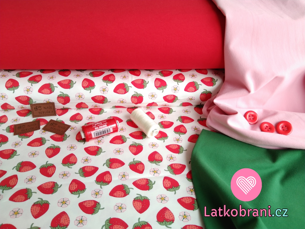 Úplet potisk vintage jahody na bílé