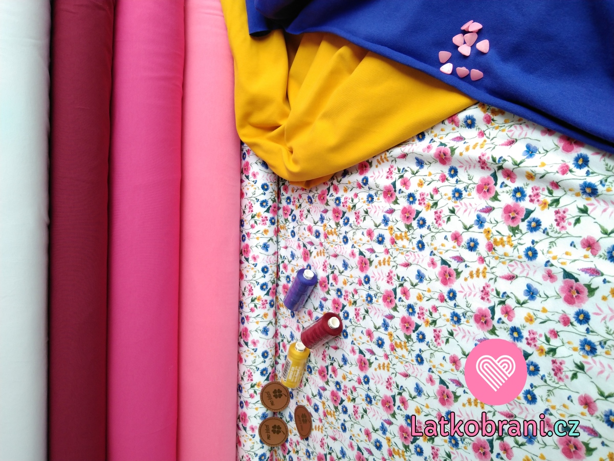 Úplet potisk luční kvítí na bílé, BIO