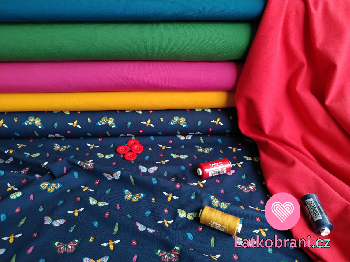 Úplet potisk vintage motýlci a broučci na tmavě modré