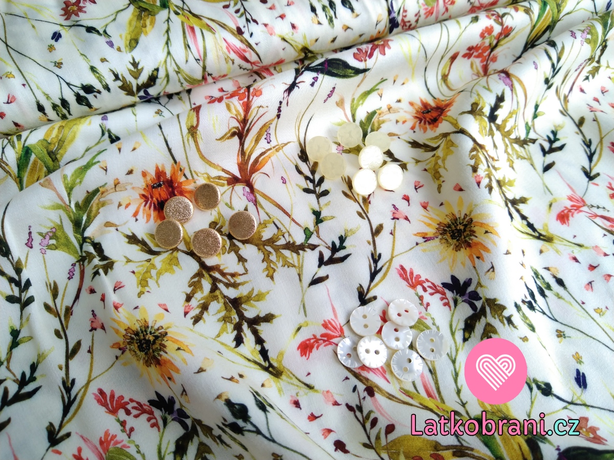 Viskóza potisk luční kvítí na smetanové, hedvábný efekt