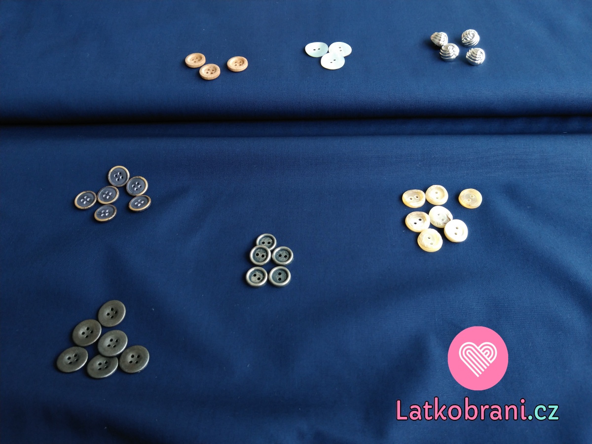 Mix knoflíčků na tmavě modrém popelínu